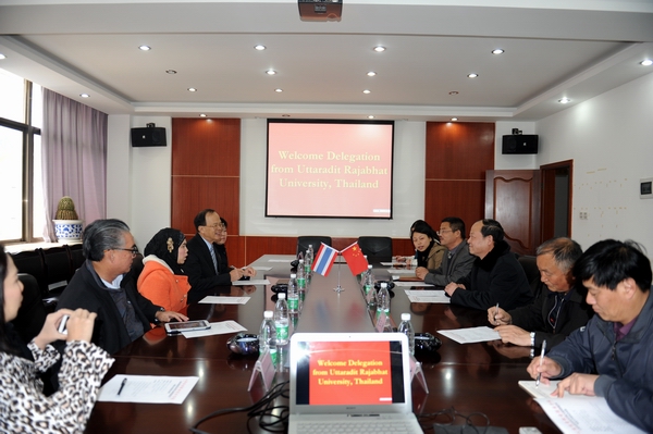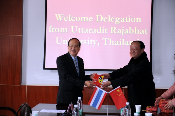 泰國程逸皇家?guī)煼洞髮WProf.Dr.Ruangdet.Wongla校長在致辭中很高興地談道,兩所學校有了很好的合作開端,優(yōu)勢互補,雖然是第一次來但感覺像一家人很親切!他也簡要介紹了泰國程逸皇家?guī)煼洞髮W的辦學歷史、專業(yè)設置、師資水平、學生狀況等。學校對在泰國學習10名學生的安全、健康、學業(yè)都十分關注、關心,像對待自己的孩子一樣。也希望提升兩校合作的內涵和規(guī)格,原則同意與貴校合作辦學的2+2模式與2+1+2模式,有關合作的細則需再進一步協(xié)商并盡快簽訂協(xié)議。Prof.Dr.Ruangdet.Wongla校長還介紹了在程逸皇家?guī)煼洞髮W學習中一年的學費、生活費等情況。