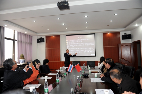 凌處長介紹了我院與泰國程逸皇家?guī)煼洞髮W的合作辦學情況,2013年院長助理田應華教授代表學院與貴校簽訂了2+1模式的合作備忘錄,現(xiàn)有10名學生在貴校學習。2014年我院還希望與貴校協(xié)商簽訂以下兩種合作模式,即:小語種的2+2模式,和非泰語專業(yè)學生的2+1+2模式,學生完成學業(yè)后獲得貴校的本科學歷文憑。