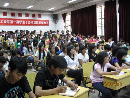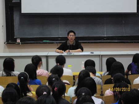 通知中心2010年9月14日下午,在茭菱校區階梯教室內氣氛熱烈,掌聲不斷,這是黨委書記崔金賦同志在為2010年入學的新生作“形勢與政策”的講座現場。