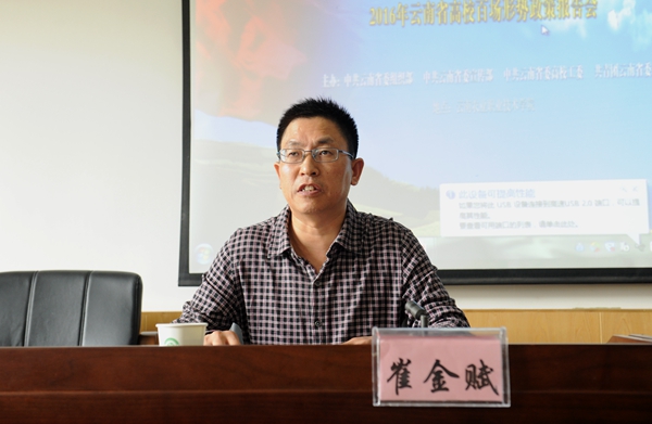 按照省委高校工委關于繼續組織好2016年“共筑中國夢?同繪彩云南”高校百場形勢政策報告會的要求。我校于7月4日(周一)下午2:30聘請云南近代歷史學家、師范大學吳寶璋教授,在茭菱校區三樓會議室召開形勢與政策報告會。學院副科級以上領導干部及教工黨員濟濟一堂聆聽了報告會,會議由崔金賦書記主持。