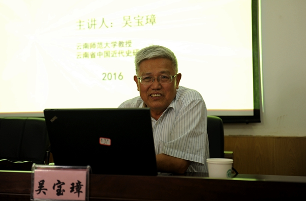 報告會上,吳教授作了題為《紅軍長征過云南——紀念紅軍長征勝利80周年》的專題報告。報告對長征概況、中央紅軍過云南、紅二、六軍團過云南和云南各族人民對紅軍的支援及紅軍長征對云南革命的影響等方面作了全面講述。吳寶璋先生幫助我們回顧了80年前,中國共產黨一段可歌可泣的歷史,震撼世界的紅軍長征,一次跨越萬里的出發和勝利到達。