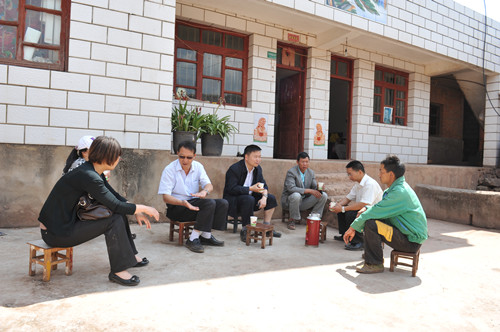 5月18日,在彭志遠(yuǎn)院長和俞浩副院長的帶領(lǐng)下,黨(院)辦副主任楊筱瑩、畜牧獸醫(yī)系陳紅艷老師、及宣傳部工作人員,富民縣新農(nóng)村建設(shè)指導(dǎo)員等深入到富民縣羅免鎮(zhèn)石板溝村和西核村具體落實(shí)“四群”教育工作——為聯(lián)系戶送去價(jià)值4000元的化肥,并帶去了養(yǎng)羊的實(shí)用技術(shù)。
