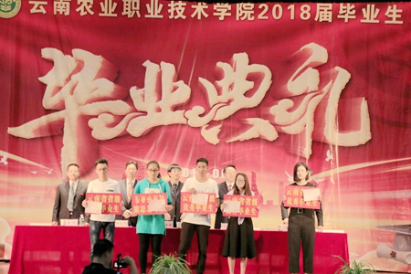 楊龍老師代表教師發言。他以幽默詼諧的語言回顧了自己的大學生活,并以“有夢想,敢拼搏,要堅持”九個字希望畢業生無論走到哪里,都不要忘記對知識的渴求,用知識開拓未來;無論身處何地,也不要忘記自己是一個農職人。15級畜牧獸醫學院朱灼凡同學作為學生代表發言。他在發言中回顧自己和同學在農職學院的點點滴滴,表達臨別前的不舍,代表2015級全體畢業生感謝學校領導和老師的關心、幫助和諄諄教導。并表示離開校園,走上社會,還會繼續深造,將以最飽滿的熱情去勇敢地面對各種挑戰。