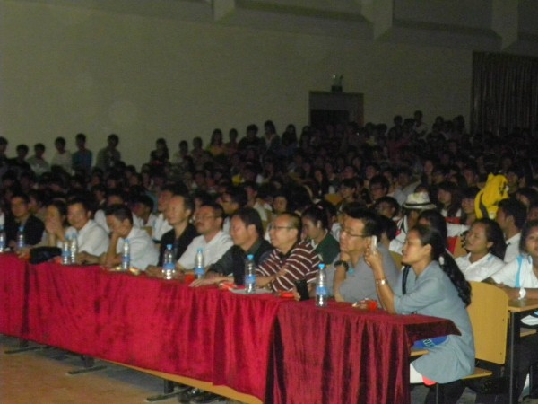 晚會以一首曲調激昂的粵語彈唱《不再猶豫》拉開了帷幕。晚會有歌曲、舞蹈、小品、武術等節目。2012級同學的舞蹈《cry、cry》把全場氣氛推高到了極點;2013級新生的健美操和《鬼步舞》展現出了他們的朝氣、青春與活力。2011級學長學姐也不甘落后,他們表演的舞蹈《野人狂歡》狂野而奔放。泰國同學的泰語說唱《男孩》和泰國舞蹈,讓觀眾領略到了泰國風俗文化的魅力。五年制大專班的同學表演了《梅里雪山的兒女》,高難度的連續單腿旋轉和往復空翻技驚四座,贏得滿堂喝彩。歌曲《最幸福的人》、《不要怕》又把觀眾帶入了一個空靈澄澈的境界。學院武術協會的同學應邀表演了《刀光棍影》,展現了響刀、雙截棍等中國冷兵器和傳統招式。最后晚會在電子琴獨奏《夢中的婚禮》和我系吉祥物“生生”的月餅大派發中結束,禮堂內始終洋溢著歡樂氣氛,不時爆發出陣陣掌聲。