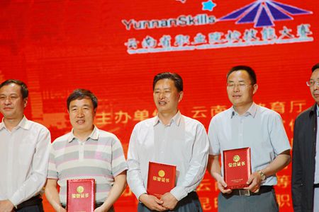 通知中心2018年5月7日,由云南省教育廳主辦、云南省高等職業院校實踐教學指導委員會協辦的“2018年云南省職業教育活動周啟動儀式暨云南省職業院校技能大賽閉幕式”在云南省大劇院隆重舉行。會上,大賽組委會向獲得優秀組織獎、特別貢獻獎、校企合作示范企業的學校、獲得職業技能大賽團體一等獎的代表和獲得職業技能大賽個人一等獎的代表頒發了獎狀、證書。我院參加了16個賽項的比賽,取得了一等獎4項、二等獎2項、三等獎7項的優異成績。田應華副院長、實踐教學中心主任李石友、指導教師代表、獲獎選手代表參加了頒獎儀式。