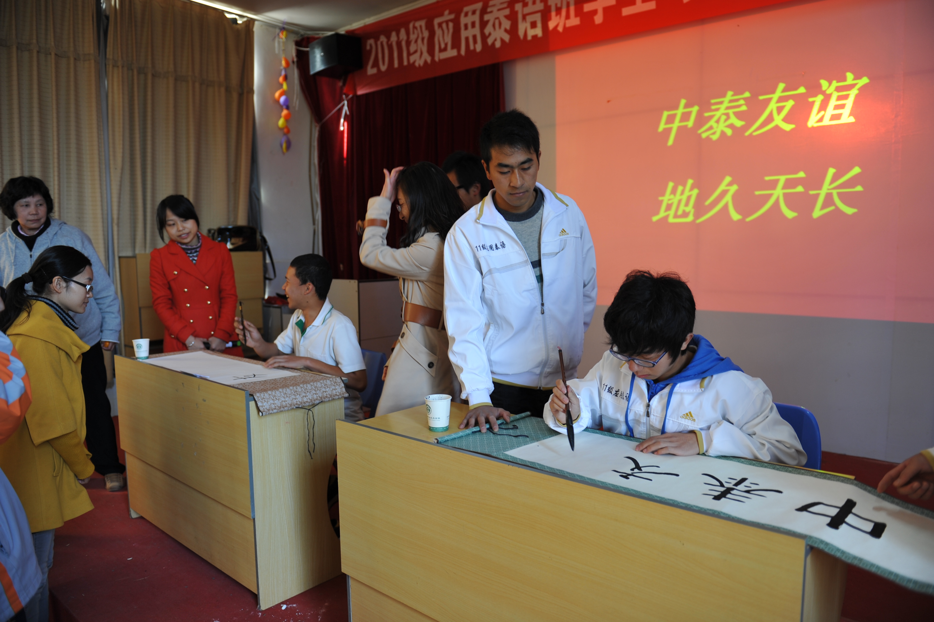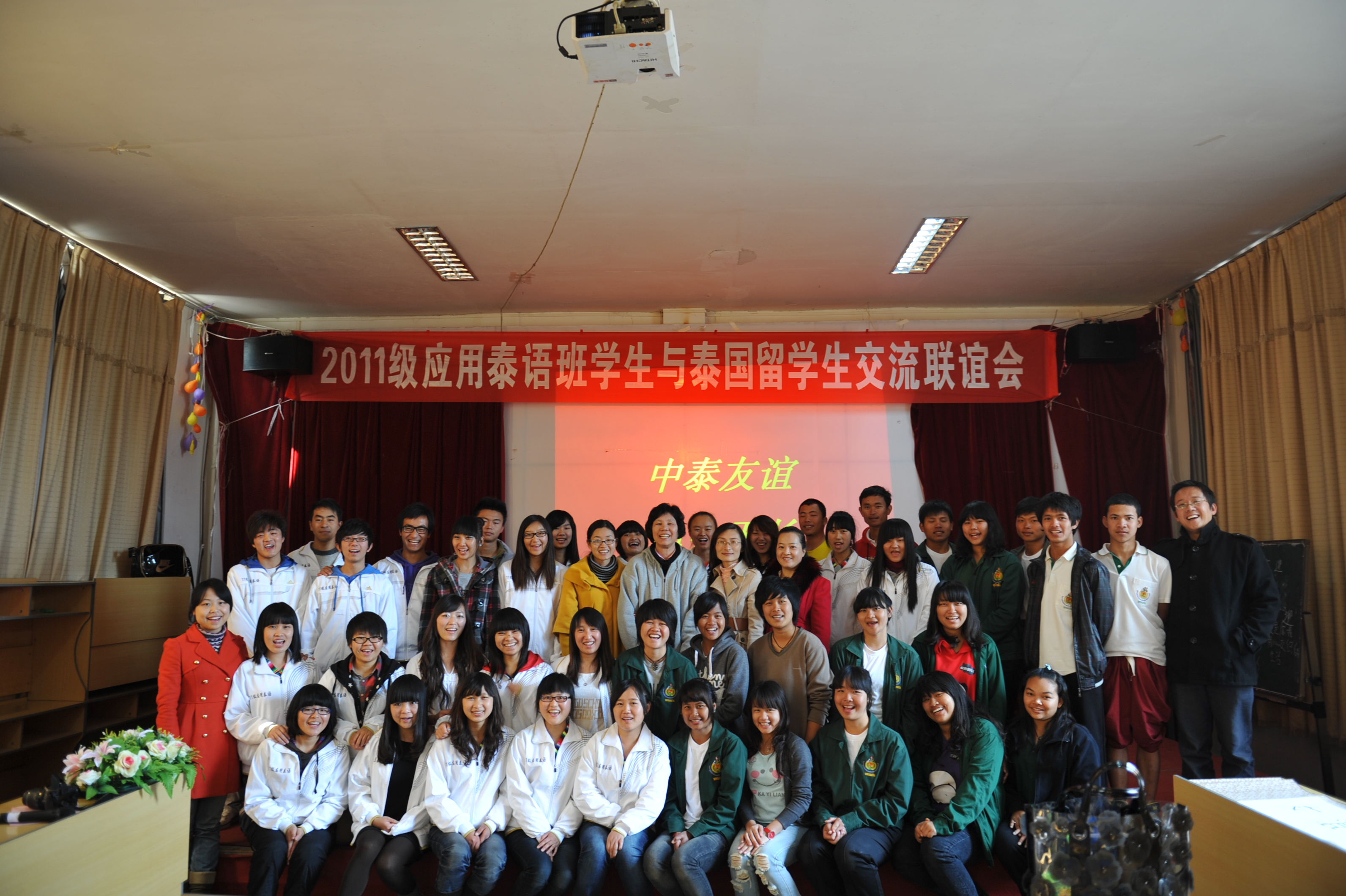 通知中心 2011年11月23日上午,基礎(chǔ)部2011級(jí)應(yīng)用泰語班學(xué)生與我院第六批泰國留學(xué)生交流聯(lián)誼會(huì)在小哨校區(qū)多媒體教室三舉行。基礎(chǔ)部副主任李憬、對(duì)外合作交流處教師鄭芳、泰語教研室教師湯林蕓、2011級(jí)應(yīng)用泰語班學(xué)生和泰國18名留學(xué)師生出席了此次聯(lián)誼會(huì)。