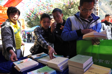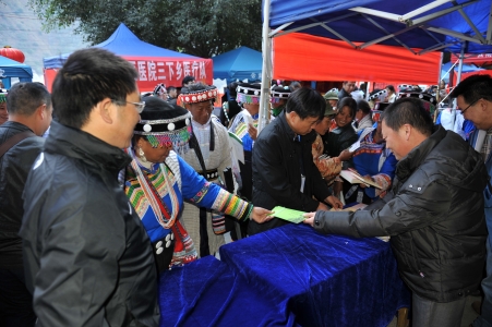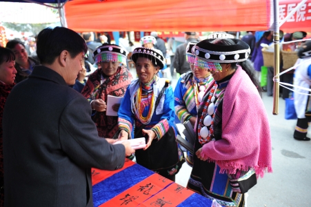 12月20日,怒江州六庫鎮(zhèn)冬日暖暖。全省2011-2012年度全省文化科技衛(wèi)生“三下鄉(xiāng)”集中示范活動在這里拉開序幕。恰逢傈僳族的“闊時節(jié)”,前來鎮(zhèn)上趕集的人熙來攘往。在六庫體育場舉辦了農(nóng)業(yè)科技專家咨詢服務、科普展覽、法律咨詢服務、送醫(yī)送藥、優(yōu)惠售書等活動。體育場的服務點上擠滿了一大早就從四面八方趕來的各族群眾。整個州府沉浸在一片熱烈、喜慶而歡快的氣氛中。近6個小時的科技文化宣傳活動受到怒江州人民的熱烈歡迎,這是我院從2006年起至今參加的第六次三下鄉(xiāng)活動。