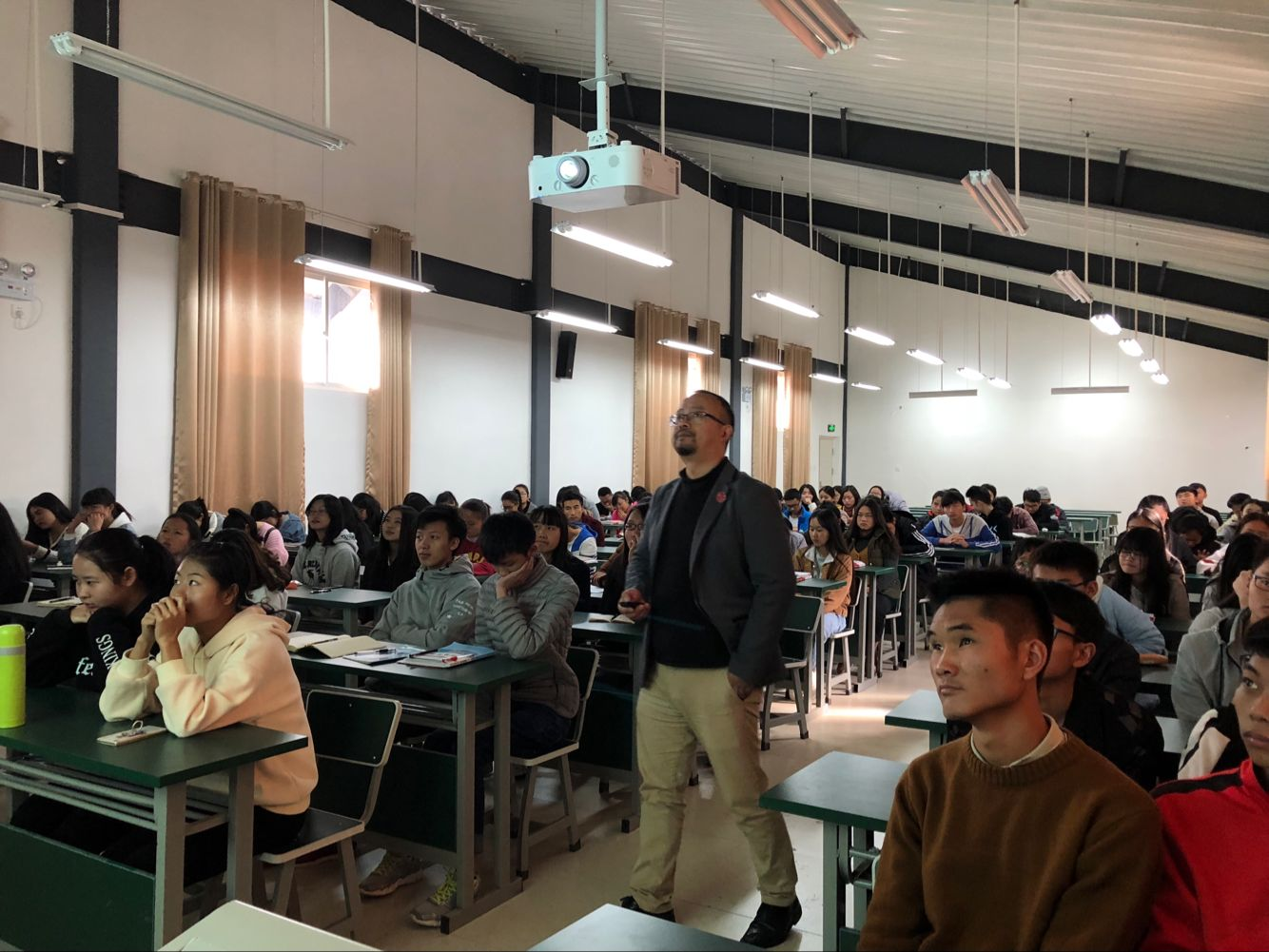 李建,云南葡萄酒界從業人士,1997年進入云南紅酒業從事葡萄酒銷售,行業經驗20年,現就職于上海奔富國際貿易有限公司西南營銷中心。李總用鮮活生動的經歷,深入淺出地講解了葡萄酒的相關知識及營銷,學生深深地被李總的精彩演講所吸引,不時響起熱烈的掌聲。
