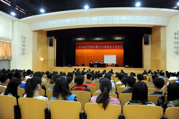 丹桂飄香,秋高氣爽。8月23日上午8:30,工程學院開學典禮暨2014級新生入學教育率先在小哨校區大禮堂舉行。工程學院全院教職工、新生班主任、2014級新生、部分老生代表出席了典禮。典禮由工程學院黨總支書記蔡永生主持。