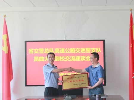 陳躍坤大隊(duì)長向?qū)W校授予“云南省文明交通學(xué)校”牌子