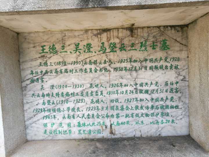 最后,大家來到位于黑龍潭公園內的王德三、吳澄、馬登云三烈士墓,全體黨員同志在三烈士墓前默哀并進獻鮮花。馮志宏書記向大家講解王德三烈士與學校的淵源和革命事跡。王德三,中共云南地下黨第一任省委書記,曾于1929年在當時的昆華農校(云南農業職業技術學院前身)任教,他以我校教師身份作為掩蔽,開展地下黨工作,直到1930年11月,遭到叛徒出賣不幸被捕。他在獄中毫不畏懼,給遠在祥云的父親寫下著名的“萬言遺書”,做好就義準備。1930年12月31日,32歲的王德三、張經辰、李國柱、吳澄四位革命志士,慷慨就義。
