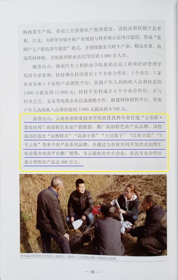 此次我院案例入選國家重要報告,標志著我院互聯網+農業+精準扶貧人才培養模式創新取得突破,社會服務工作已在全國職教范圍形成一定的影響力。學院將以此為契機,依托高原特色農業產教聯盟繼續深化合作,積極打造高原特色農產品品牌,進一步提升人才培養質量,將就業扶貧與“扶志”“扶智”相結合,激發云南農業人口內生動力,為云南脫貧攻堅做出更大貢獻。(高等職業教育研究所供稿)