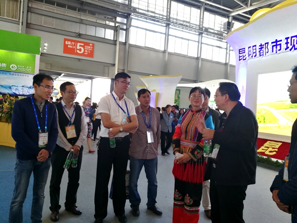 文俊院長(zhǎng)還來(lái)到展會(huì)銷售區(qū),與昆明順賽農(nóng)業(yè)科技有限公司負(fù)責(zé)人洽談校企合作相關(guān)事宜,我校將與該公司在蔬菜和花卉無(wú)土栽培技術(shù)的示范、研發(fā)和展示方面將有進(jìn)一步的合作。