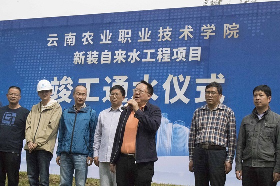 我院崔金賦書記在講話中回顧了1958年學院前身云南省畜牧獸醫學校在此建校,60年以來師生生活用水主要依靠地下取水的艱難辦學歷程,指出自來水的接通是我院師生生活中的一件喜事,也是學院建設發展的一件大事。如花草期待甘霖一般,全院所期待的自來水時代即將到來,全體師生將永久銘記這一刻,銘記為此做出過努力的人們。