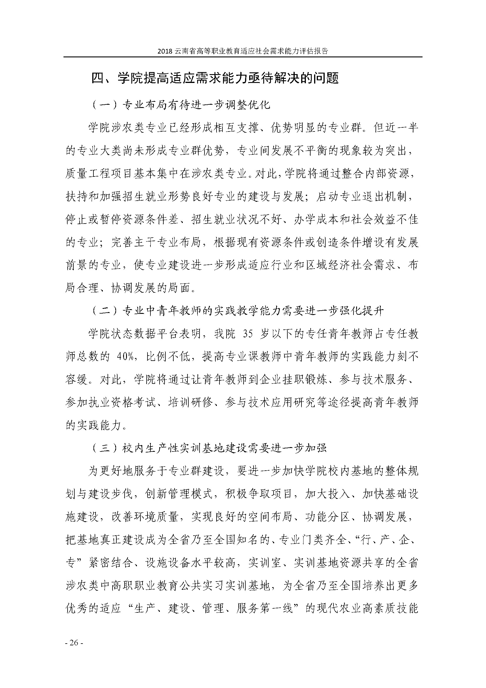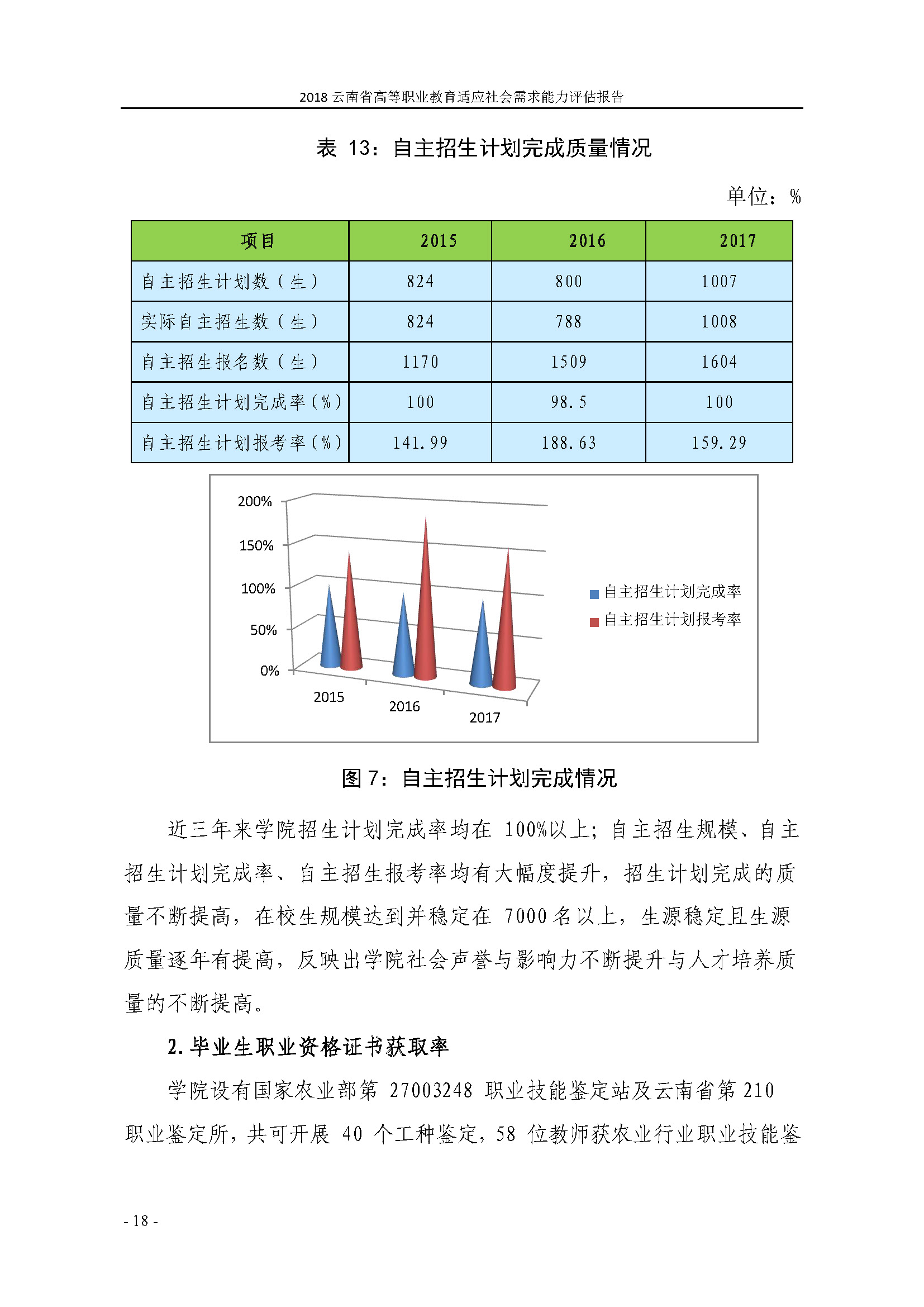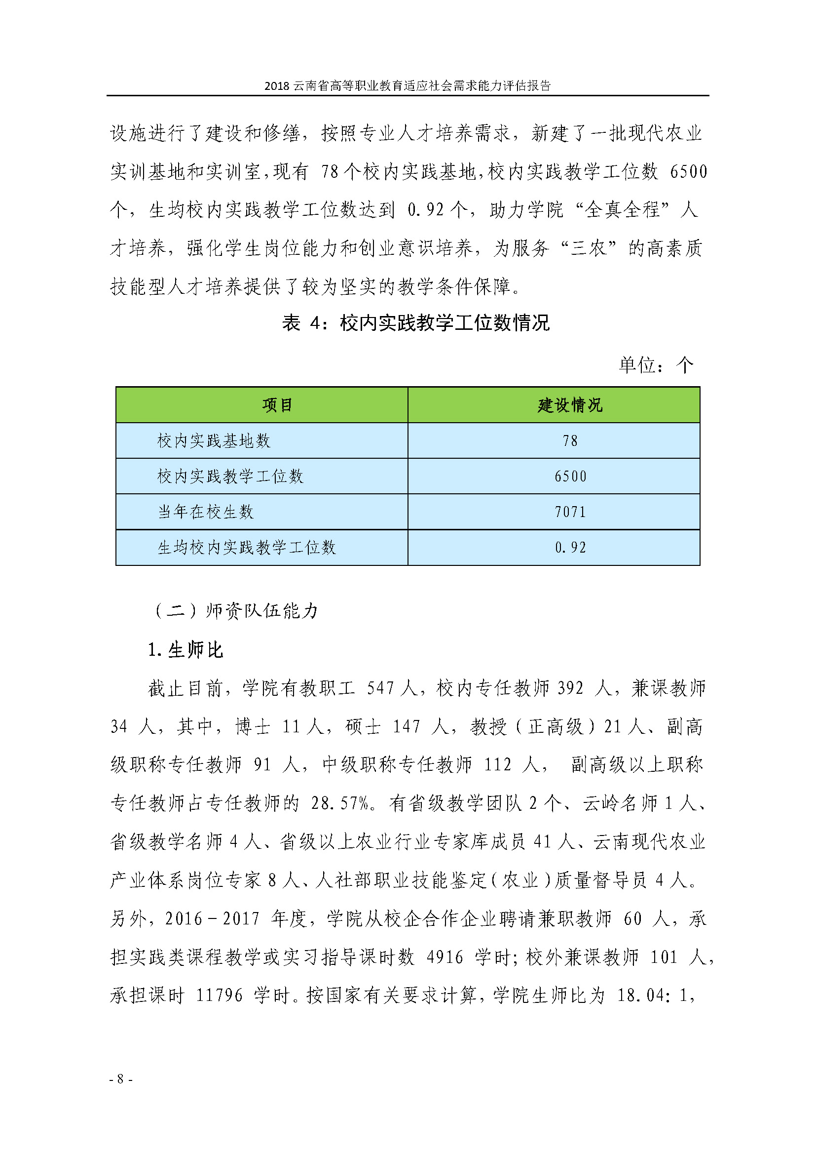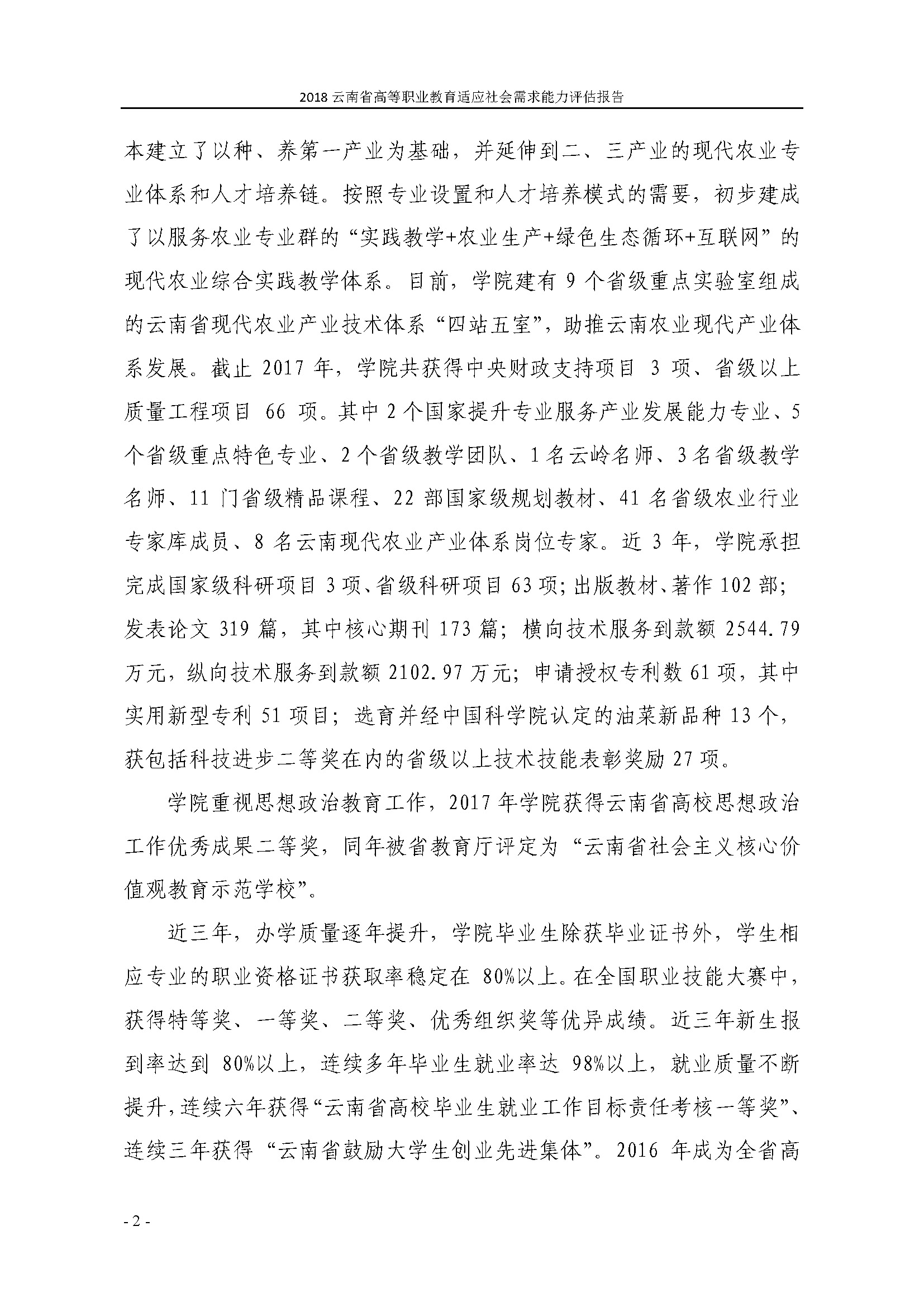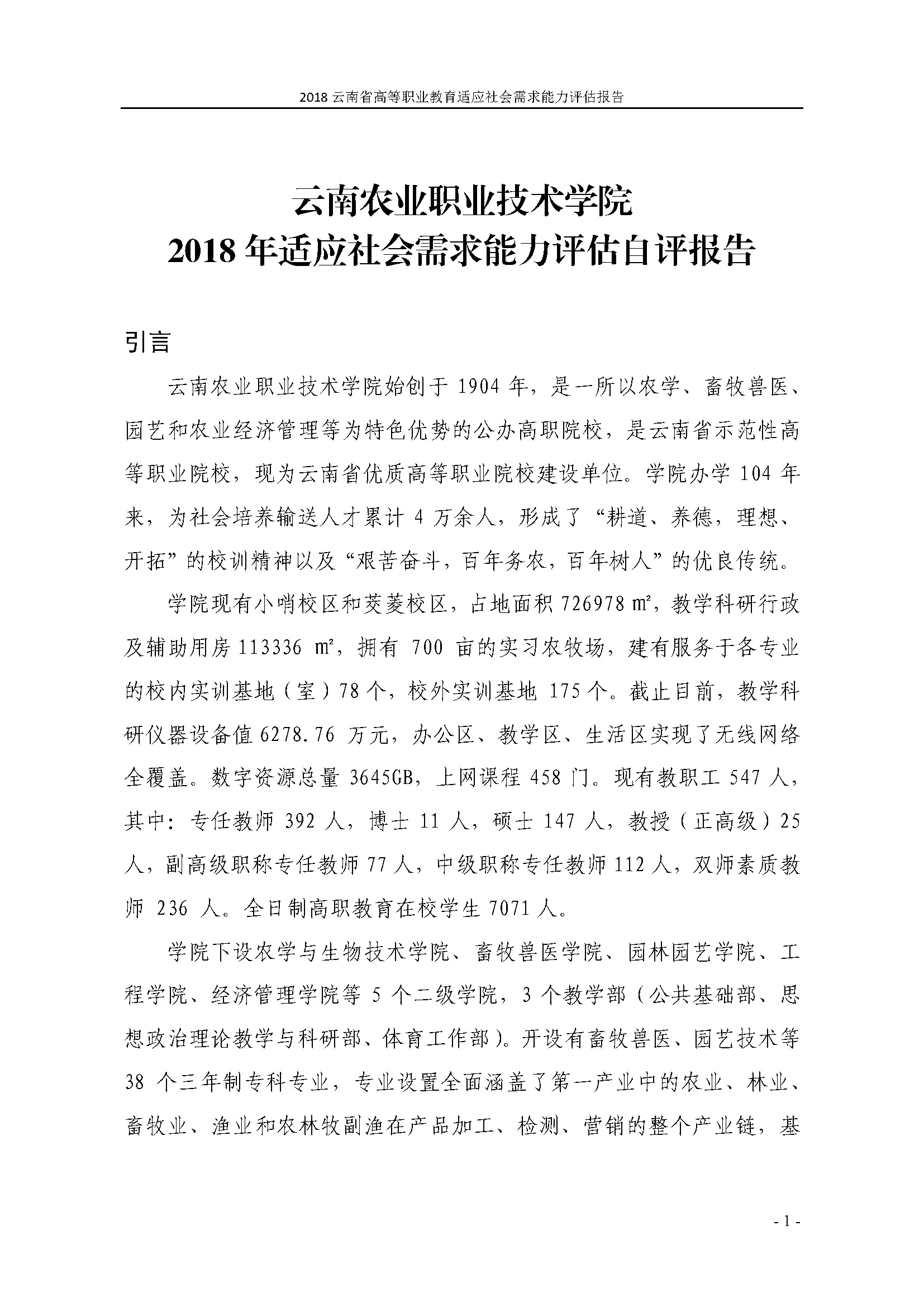 云南農(nóng)業(yè)職業(yè)技術(shù)學(xué)院2018年適應(yīng)社會(huì)需求能力評(píng)估自評(píng)報(bào)告