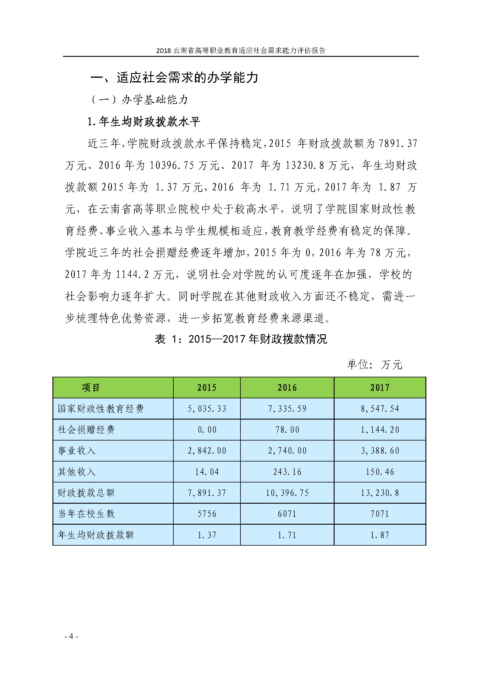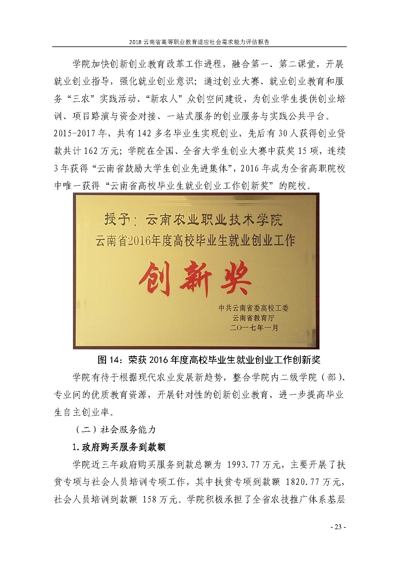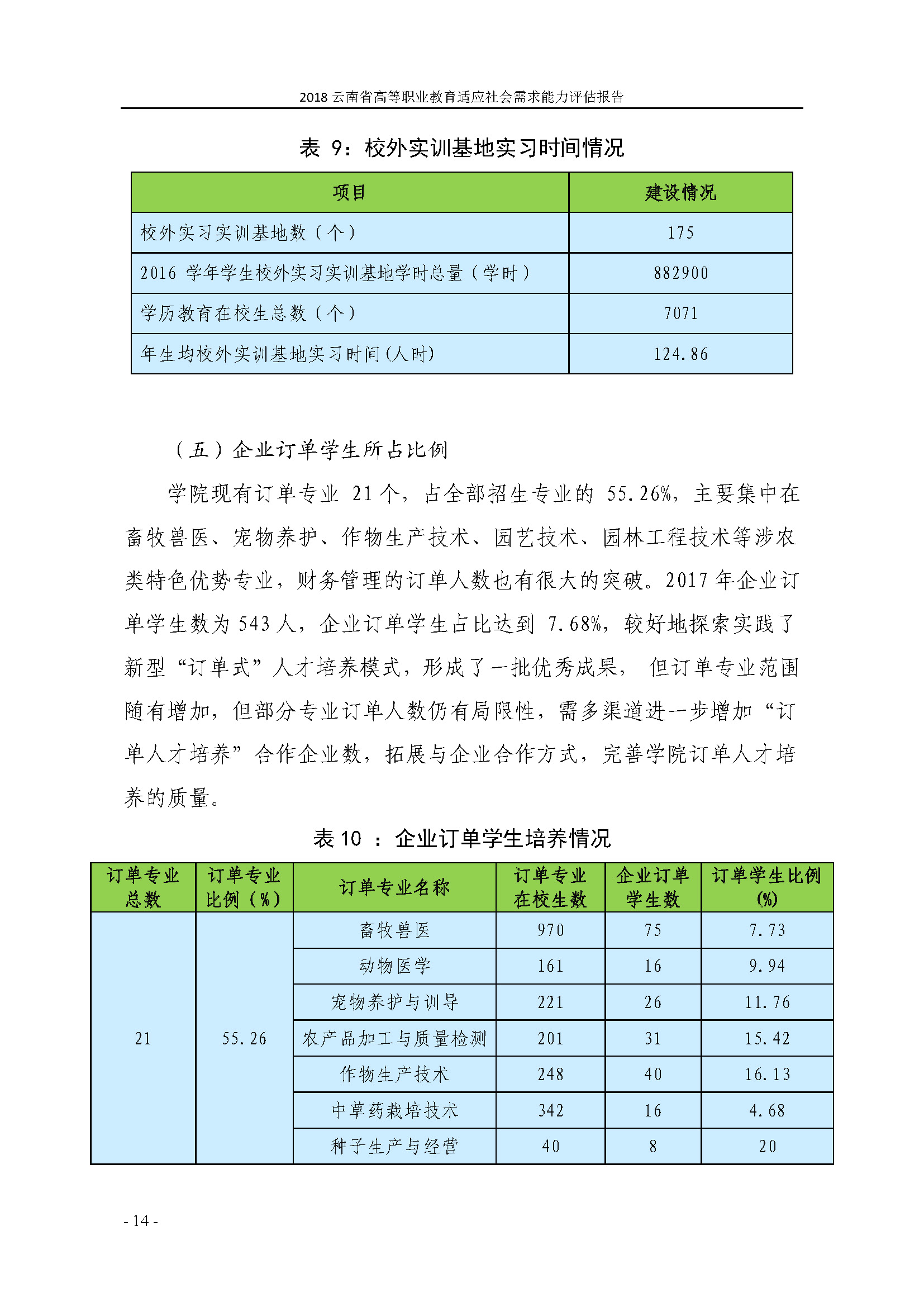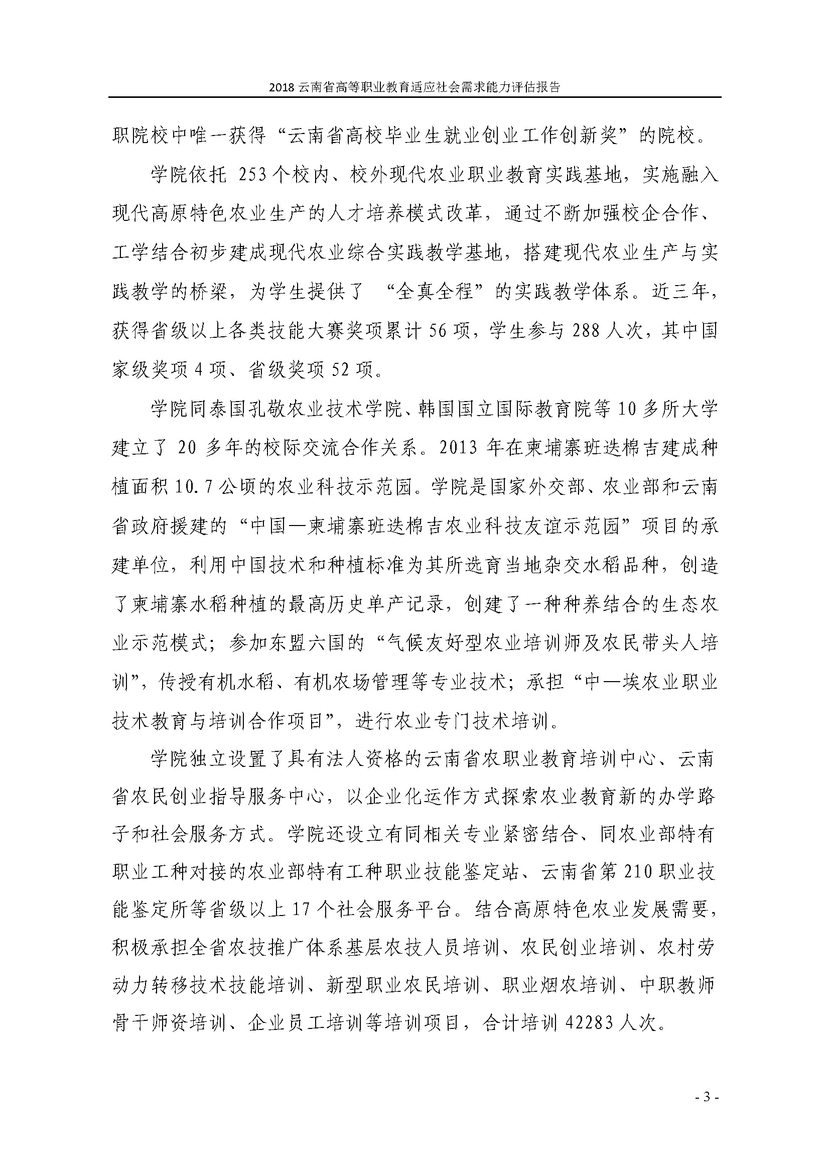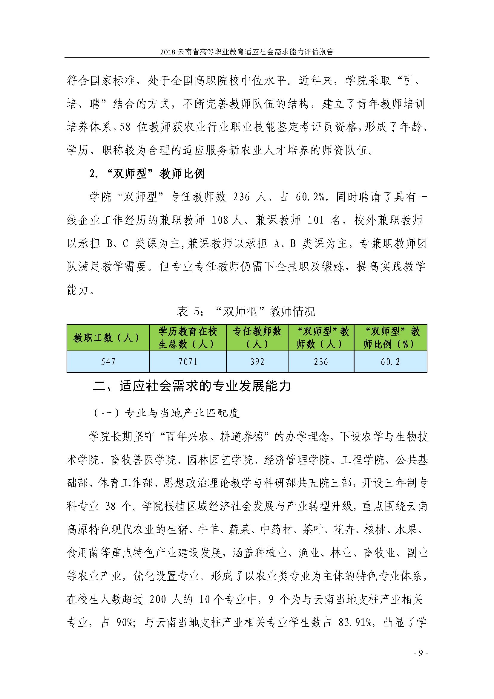 云南農(nóng)業(yè)職業(yè)技術(shù)學(xué)院2018年適應(yīng)社會(huì)需求能力評(píng)估自評(píng)報(bào)告