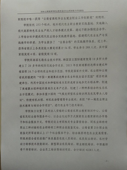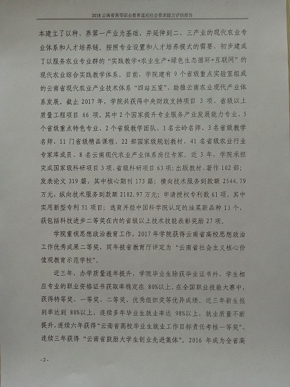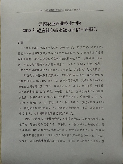 現將云南農業(yè)職業(yè)技術學院適應社會需求能力評估自評報告(2018)向社會公示。