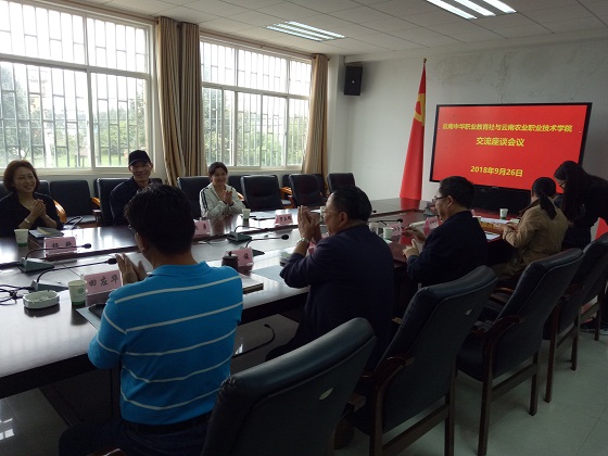 文俊院長(zhǎng)向云南中華職教社姚勇主任一行介紹學(xué)院情況