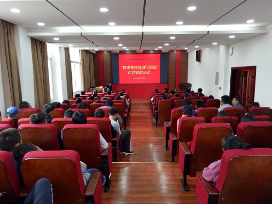 通知中心2018年10月24日下午,由省委高校工委辦公室統(tǒng)一組織的“將改革開(kāi)放進(jìn)行到底”百姓宣講活動(dòng),在我院小哨校區(qū)實(shí)訓(xùn)樓三樓階梯教室舉行。本次宣講活動(dòng)邀請(qǐng)了百姓宣講團(tuán)成員云南省委黨校許青萍教授和昆明理工大學(xué)馮晶教授作為宣講人。在黨委宣傳部組織下,我院90余名學(xué)生參加了宣講活動(dòng)。
