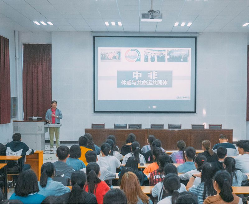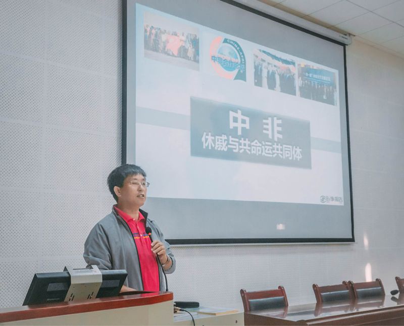 崔金賦書記從2018年9月3日召開的中非合作論壇北京峰會談起,運用大量的圖片、視頻、數字和事例,以層層遞進的嚴密邏輯,深刻解讀了中非交往的歷史,詳細闡述了中非合作論壇創建的時代背景以及發展歷程,認真總結了中非合作在政治領域、經濟領域、發展領域以及安全方面取得的成績,剖析了中非合作具有的重大歷史意義及特點,圍繞中非合作的未來發展進行了深入淺出的闡釋。