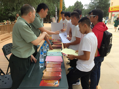 2017年6月14日,昆明市五華區(qū)武裝部到我校進(jìn)行2017年征兵工作宣傳活動,俞浩副院長及學(xué)生工作處參與宣傳活動。活動以展板、發(fā)放宣傳材料及現(xiàn)場解答等形式為主,為廣大學(xué)生在入伍、直招士官、退役復(fù)學(xué)、學(xué)費(fèi)資助、補(bǔ)助等方面給予解答,活動組織有序,宣傳面廣泛,得到學(xué)生好評,收到預(yù)期效果。