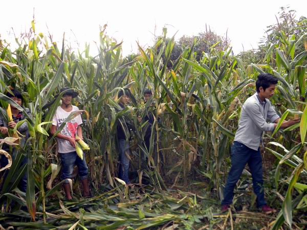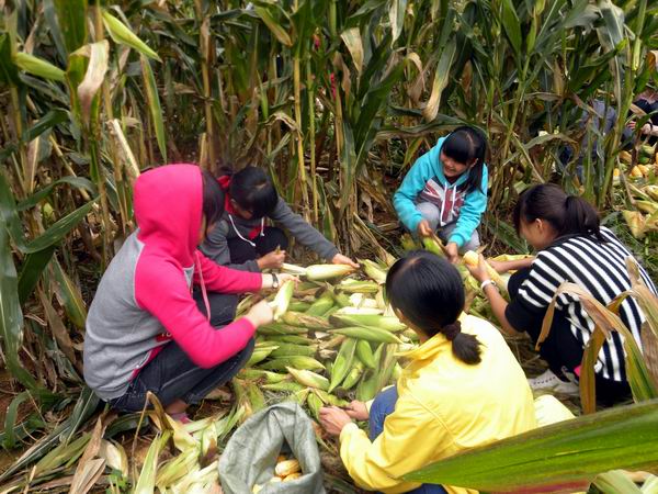 全體師生按既定計劃有條不紊地對成熟的玉米進行采收。兩天時間順利完成玉米采收工作。經過初步測算,4200株收獲800多公斤玉米,達到了試驗目標。(生物工程系供稿)