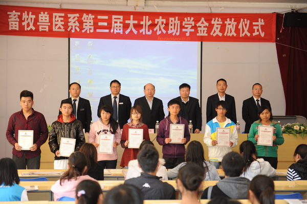 最后,黨總支書記錢林東宣讀了第三屆“大北農(nóng)助學(xué)金” 獲獎同學(xué)名單,李秋等25名同學(xué)獲得獎勵,助學(xué)金總額15000.00元。彭院長、潘副總裁等領(lǐng)導(dǎo)為獲得大北農(nóng)助學(xué)金的同學(xué)頒發(fā)了榮譽證書。獲獎同學(xué)代表在發(fā)言中感謝學(xué)院為同學(xué)們提供了良好的學(xué)習(xí)和創(chuàng)業(yè)平臺,感謝企業(yè)的關(guān)懷,決心用實際行動來報答各方的關(guān)心。(畜牧獸醫(yī)系 黨委宣傳部 供稿)