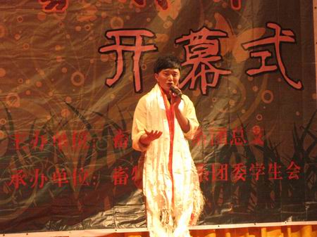 寒雪梅中盡,春風柳上歸。隨著春天的歸來,文化藝術的春風又吹過了小哨的校園。2011年3月22日晚7:30,在學院小哨校區大禮堂,畜牧獸醫系首屆大學生文化藝術節開幕式晚會隆重上演。蒞臨此次晚會的院系領導有:學院黨委書記崔金賦,宣傳部部長馮志宏、學生工作處處長周誠、園藝與園林工程系黨總支書記唐世凱、畜牧獸醫系黨總支書記錢林東,生物工程系辦公室主任張梅、系團總支書記浦仕飛,以及校團委、系團總支的部分老師;畜牧獸醫系全體在校學生參加了藝術節開幕式。