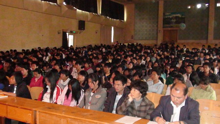 通知中心2010年11月22日中午,學院黨委書記崔金賦為小哨校區園藝與園林工程系、畜牧獸醫系和生物工程系801名入黨積極分子作了題為《大學生為什么要入黨》專題講座。崔書記從解決大學生人生信仰問題、履行相應的組織程序、文明言行及個人修養等方面,深入淺出、全面系統、清晰深刻、語重心長地全面闡釋了當代大學生為什么要入黨這個意蘊深遠的命題。提高了同學們對黨的認識,有效解決大學生入黨的動機問題,統一了從形式到思想入黨兩個方面的內容,著重強調了大學生思想作風、言行舉止、綜合素質和今后努力的方向。