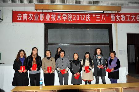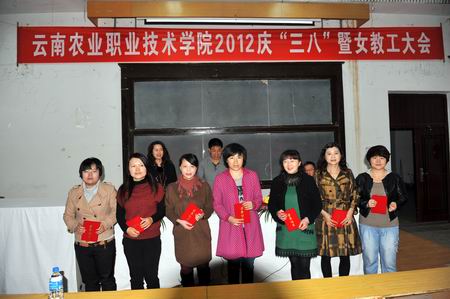 會議由學院黨委副書記趙剛主持,黨委書記崔金賦宣讀表彰“五好家庭”女職工、“優(yōu)秀女教職工”獲獎名單。學院工會委員會授予劉艷萍等11個家庭“2011年度‘五好家庭’”榮譽稱號,授予張梅等12名同志“2011年‘優(yōu)秀女教職工’”榮譽稱號。崔金賦書記、趙剛副書記、趙莉副院長為獲獎職工頒獎。會后,全體與會人員合影留念。上午9:00,全體與會人員前往昆明福保文化城水上大世界開展水上游泳、棋牌娛樂、參觀水上蔬菜栽培基地、觀看“福天寶地”大型水上歌舞節(jié)目等促進身心健康,增進友誼,增強知識的活動。