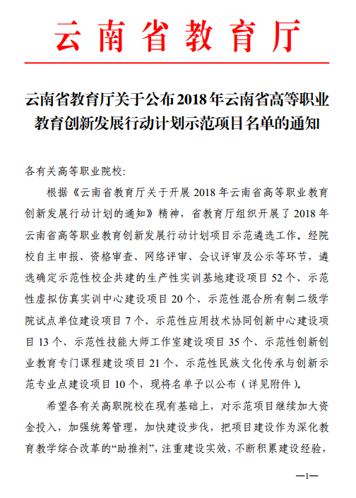通知中心2019年1月2日,省教育廳公布2018年云南省高等職業教育創新發展行動計劃示范項目,我院申報的11個項目全部被確定為云南省高等職業教育創新發展行動計劃示范項目。其中:學院生豬標準化養殖、太空蔬菜、現代化無公害蛋雞養殖3個生產性實訓基地被確定為云南省高等職業教育創新發展行動計劃示范性校企共建生產性實訓基地建設項目。財會職業能力養成和藥品生產技術GMP虛擬仿真實訓中心被確定為云南省高等職業教育創新發展行動計劃示范性虛擬仿真實訓中心建設項目。“互聯網+特色學院”被確定為云南高等職業教育創新發展行動計劃示范性混合所有制二級學院試點單位建設項目。農產品質量安全檢測應用技術協同創新中心被確定為云南省高等職業教育創新發展行動計劃示范性應用技術協同創新中心建設項目。云南省王銳寵物醫師大師工作室、云南省郝鳳梅寵物美容大師工作室、云南省段金輝月季切花大師工作室3個技能大師工作室被確定為云南高等職業教育創新發展行動計劃示范性技能大師工作室建設項目。《創新創業教育與就業指導》課程被確定為云南高等職業教育創新發展行動計劃示范性創新創業教育專門課程建設項目。在今后的工作中,學院將在現有基礎上,對示范項目繼續加大資金投入,加強統籌管理,加快建設步伐,把項目建設作為深化教育教學綜合改革的“助推劑”,注重建設實效,不斷積累建設經驗,積極推廣建設成果,充分發揮示范引領作用,切實提高我院人才培養水平。(宣傳部)