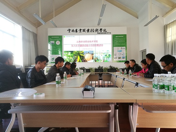 通知中心2019年1月4日下午,云南農(nóng)業(yè)職業(yè)技術(shù)學(xué)院東川太空蔬菜試驗(yàn)示范項(xiàng)目組在小哨校區(qū)農(nóng)業(yè)互聯(lián)網(wǎng)實(shí)驗(yàn)室召開了項(xiàng)目推進(jìn)會(huì)。文俊院長、東川紅園寶玉綠化有限公司董事長王正勇參加了會(huì)議。會(huì)議由項(xiàng)目負(fù)責(zé)人劉峻蓉主持。