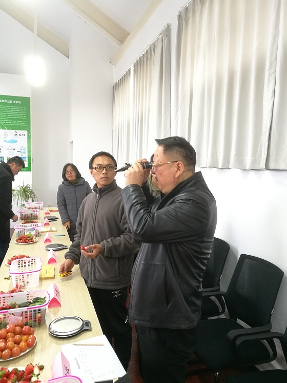 文俊院長還與項(xiàng)目組成員共同對(duì)東川試驗(yàn)示范項(xiàng)目基地種植的6個(gè)太空草莓品種進(jìn)行品質(zhì)鑒定。