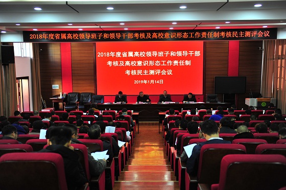 根據省委高校工委的統一部署和要求,2019年 1 月14 日上午9:30,我院在小哨校區嘉銳樓一樓階梯教室召開2018年度領導班子和領導干部考核及高校意識形態工作責任制考核會議。省委高校工委書記、省教育廳黨組書記、廳長周榮親自帶隊,率領由云南農業大學黨委副書記朱江任組長的第一考核組一行蒞臨我院考核領導班子和領導干部及意識形態工作責任制。省委高校工委組織部部長徐華,省教育廳職業與成人教育處處長段劍新、職建辦主任劉其勇等陪同周榮廳長到我院進行現場調研。我院院級領導干部,內設部門及二級學院正副職領導干部,省種畜、種禽、原種豬繁育推廣中心正科級以上干部,專家學者和教職工代表100余人參加了會議。會議由學院黨委副書記、院長文俊同志主持。