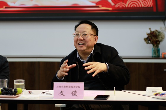 通知中心2019年1月19日下午3:00,云農職·慧農時邦產教聯盟在農職培訓中心舉行產教融合服務鄉村振興座談會。黨委書記崔金賦、院長文俊、副院長楊波、紀委書記馮志宏等黨政領導出席座談會。云農職·慧農時邦產教聯盟負責人王亞楠,上海云南商會副會長王永通,云南省河南商會監事長喬萬強,云南省青年創業協會副會長、新農人聯盟分會會長孫立剛,昆明市建筑設計研究院有限責任公司董事長楊寶璋,云南德圃佳苗農業科技有限公司副總經理萬寅寅,云南省農業科學院農業環境資源研究所主任魯耀,云南四角田農業科技有限公司董事長劉艷波,云南拓百科技投資有限公司董事長余曉龍等企業負責人參加了座談會。本次座談會由云農職·慧農時邦產教聯盟負責人王亞楠主持。