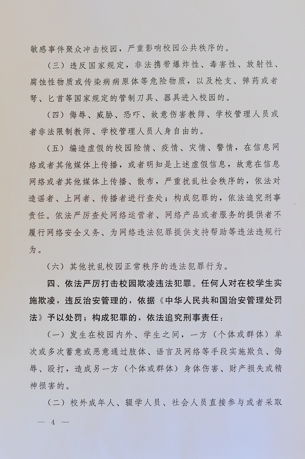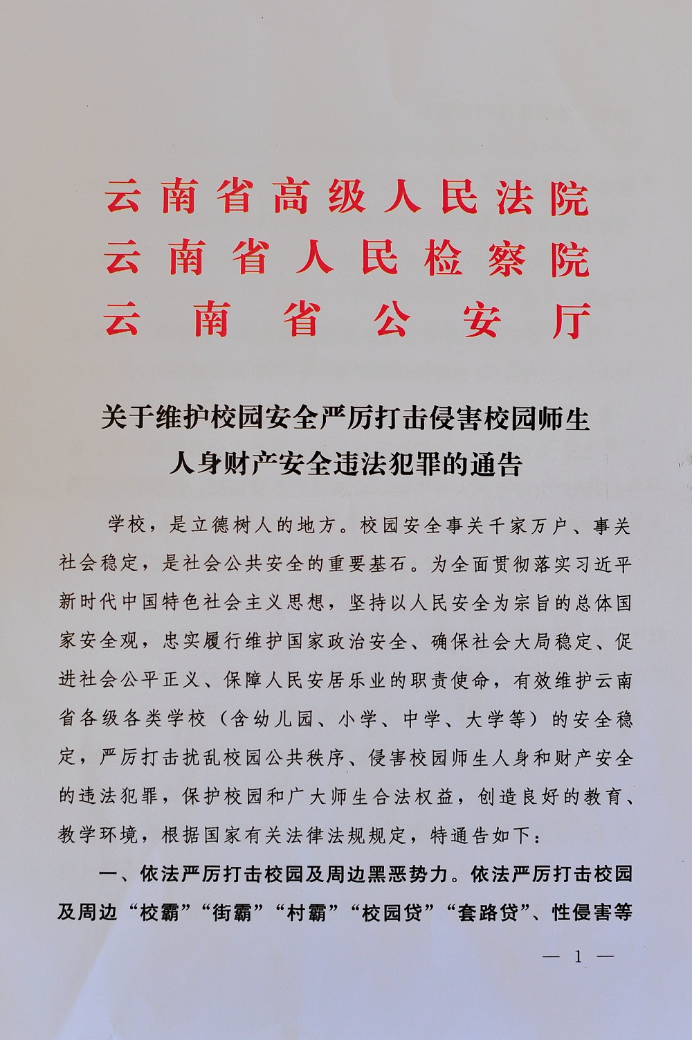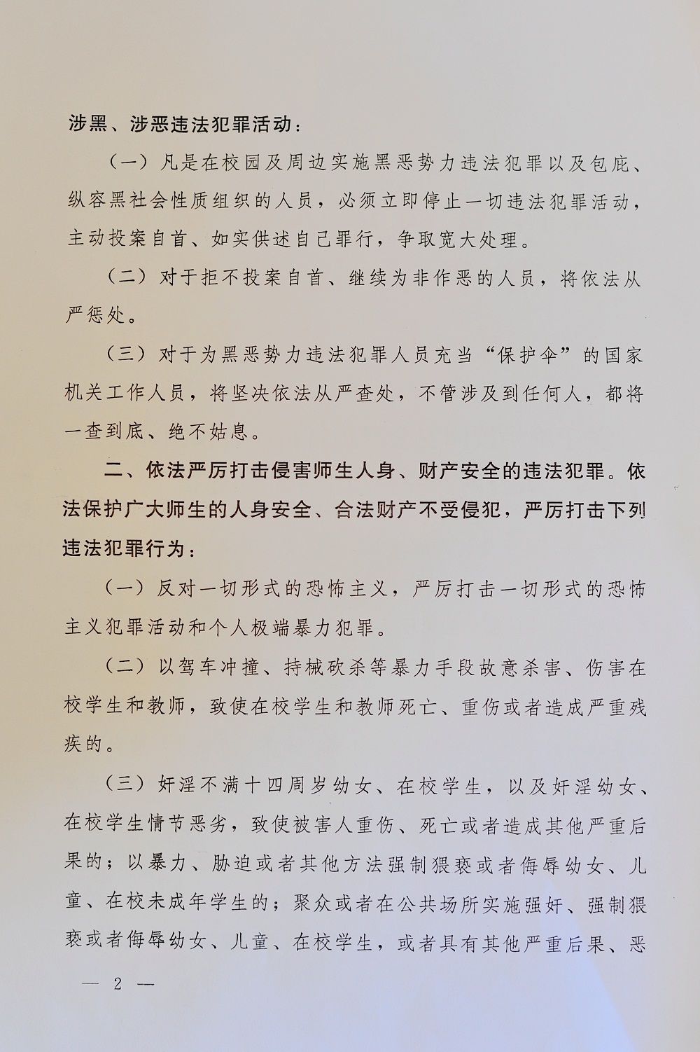 關(guān)于維護校園安全嚴厲打擊侵害校園師生人身財產(chǎn)安全違法犯罪的通告