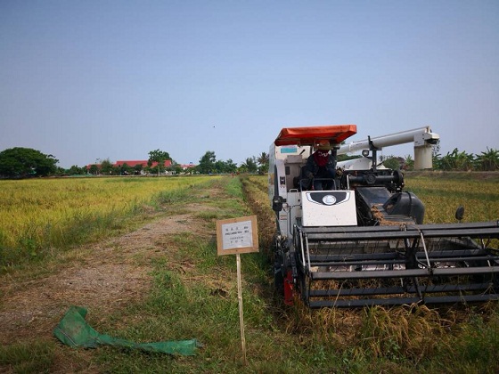泰國長粒香水稻品種收割中