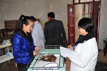 畜牧獸醫系在總結往年成功經驗的基礎上,確保職業技能鑒定工作順利完成,系上成立了“畜牧獸醫系職業技能鑒定工作領導小組”,制定了“2011屆畢業生職業技能鑒定方案”,充分調動系上高級考評員和相關工作人員的積極性,精心籌備組織:一是準備了四個高級工種供畢業生挑選:動物疫病防治員、家畜飼養工、畜產品檢驗員、動物檢疫檢驗員等;二是加大宣傳力度,鼓勵畢業生報名參加多項職業工種鑒定考試。今年不少學生報了四個工種,全系報名鑒定參考人數達到1700多人次,比去年增加一倍多。三是制定了嚴格的考試紀律,做好考試相關的保密工作。四是要求畢業生抓緊對所報各項職業技能工種的學習訓練,爭取拿到多個高級工種證書。