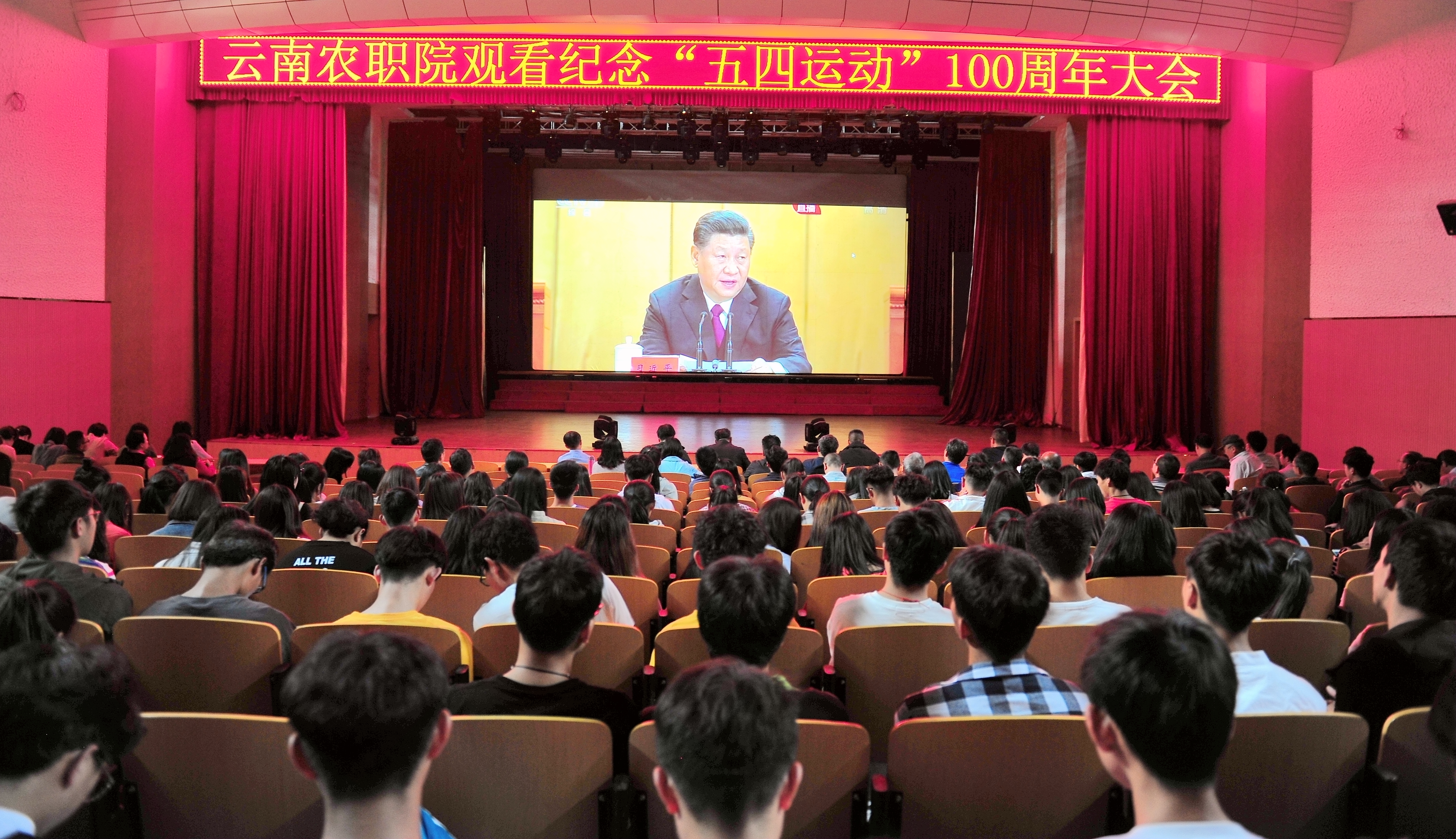 通知中心4月30日上午10時30分,紀念五四運動100周年大會在人民大會堂召開,中共中央總書記、國家主席、中央軍委主席習近平發表重要講話。我院在小哨校區蠶桑禮堂組織師生集體收看了大會直播。黨委書記崔金賦、院長文俊、紀委書記馮志宏和黨員干部、共青團干部以及師生代表等700余人濟濟一堂,以高昂的精神風貌認真聆聽了習近平總書記重要講話,第一時間學習領會大會精神。