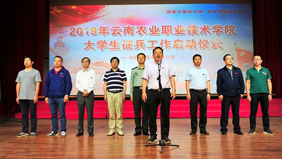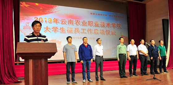 通知中心為積極宣傳大學(xué)生參軍入伍政策,推動(dòng)2019年我院大學(xué)生征兵工作有效開展,5月10日上午,我院在小哨校區(qū)蠶桑禮堂舉行2019年大學(xué)生征兵工作啟動(dòng)儀式暨征兵宣講大會(huì)。此次征兵政策宣講有幸邀請(qǐng)到了火箭軍某基地原保障部李衛(wèi)國(guó)部長(zhǎng)做征兵專題宣講。黨委書記崔金賦、院長(zhǎng)文俊等黨政領(lǐng)導(dǎo)班子,五華區(qū)委、人民武裝部政委楊鴻春,學(xué)生工作處、團(tuán)委全體人員,各二級(jí)學(xué)院黨政領(lǐng)導(dǎo)班子、專職輔導(dǎo)員,各班班主任,院學(xué)生會(huì)干部,民兵連全體成員,各學(xué)生學(xué)生代表600余人參加了宣講大會(huì)。會(huì)議由學(xué)院武裝部部長(zhǎng)凌軍主持。