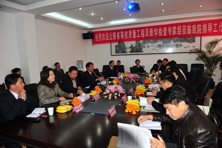 彭院長首先介紹了我院悠久的辦學歷史、辦學條件、辦學目標、辦學定位和專業(yè)等基本情況,詳細匯報了我院19項質量工程建設的進展,彭院長強調我院高度重視質量工程的建設措施有力,效果明顯突出:學院成立了質量工程建設管理專門機構——學院示范性院校建設辦公室,省級以上質量工程從2009年初的2項增加到2010底的19項;學院為建設好質量工程下?lián)芰舜罅繉m椊ㄔO經費,特別是正在申報建設的“省級示范性院校建設”一項,如果申報成功,三年總投資達3000萬元。二是匯報了我院教學常規(guī)管理的情況,彭院長指出我院進一步加強了師資隊伍建設,優(yōu)化了教師的學歷和職稱結構,特別重視“雙師型”人才的培養(yǎng);進一步加強了校內實訓基地的建設,4個云南省現(xiàn)代農業(yè)產業(yè)技術體系綜合試驗站和2個云南省高職高專院校省級示范實習實訓基地的成功建設初見成效;加強了學院基礎設施的建設;加強了教學管理人員的培養(yǎng);三是進一步推進學分制的改革;四是大力加強了校園安全管理,在建設安全、美麗、和諧的校園上狠下功夫。