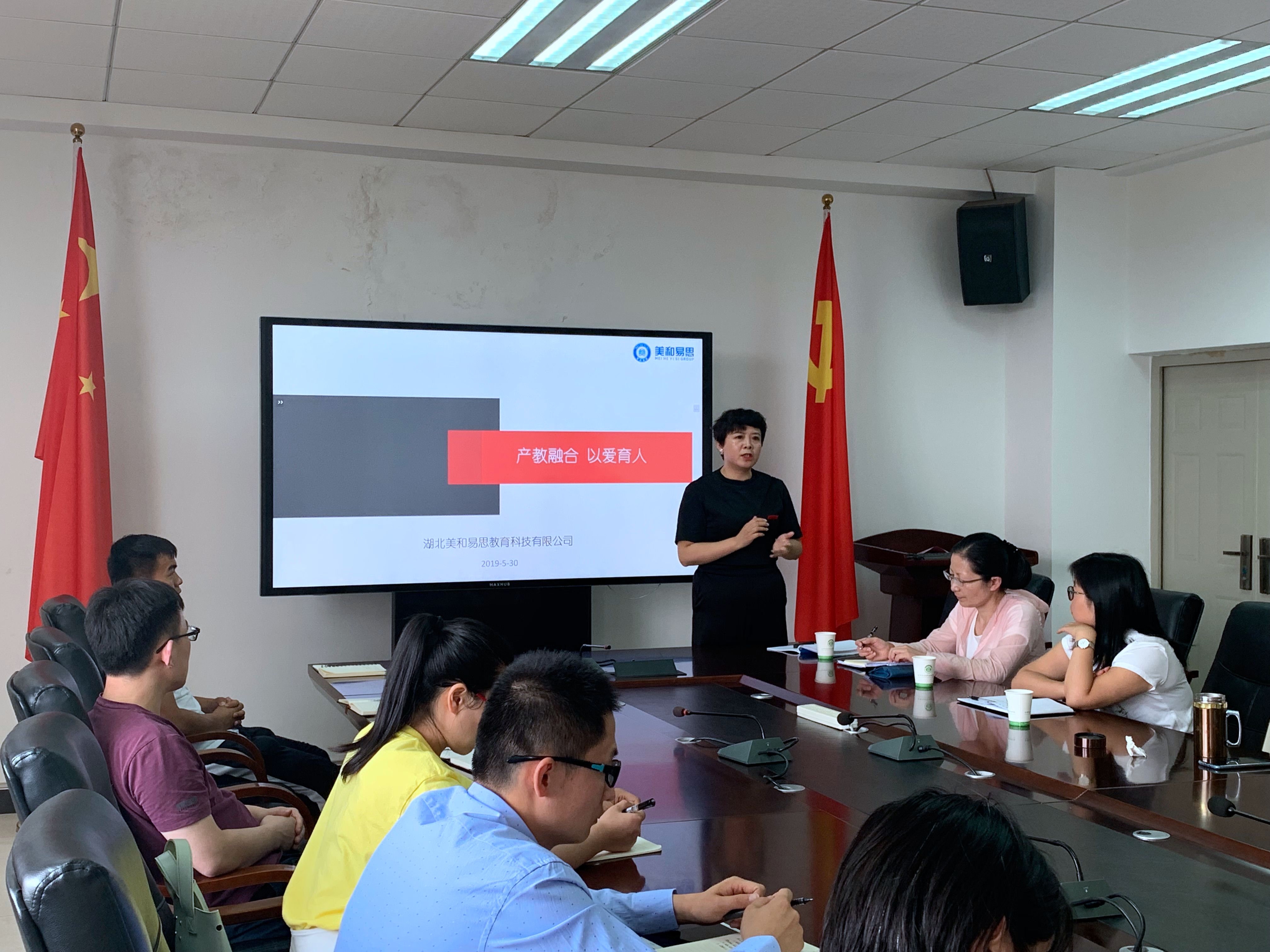 交流會由視頻《班主任的一天》拉開序幕,視頻展示了美和易思班主任關于考勤、課六、巡班、訪談、查寢等16個學生日常管理工作,讓在場的領導和老師們都感受了美和易思的精細化管理。隨后美和易思總監劉婧以“產教融合 以愛育人”為主題向與會領導、老師做學生管理工作分享,從湖北美和易思公司概況介紹、“產教融合 校企合作”人字培養模型及人字培養模型在云南農業職業技術學院的落地實踐三個方面向在場的領導、老師做了匯報。并從三個維度介紹了美和易思如何踐行愛的教育、如何在學生心中種因、育道的過程。