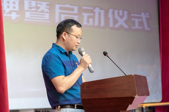 儀式開始,全體師生共同觀看了易班介紹視頻,了解易班建設及發展概況。隨后,黨院辦主任金吉斌宣讀了學院黨委關于成立易班建設領導小組和關于成立易班發展中心的決定。宣讀完畢后,文俊院長宣布我院易班建設推廣工作正式啟動,并為易班發展研究中心、易班學生工作站授牌。