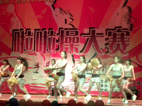 為豐富大學(xué)生校園文化生活,增強大學(xué)生體質(zhì),展現(xiàn)當代大學(xué)生青春亮麗的風(fēng)采,在園林園藝學(xué)院團總支、學(xué)生會的精心籌備下,2014年4月24日19:30在小哨大禮堂隆重舉行了“園林園藝學(xué)院2014學(xué)年啦啦操比賽”,所有在校班級都參加了此次比賽。蒞臨本次比賽的有學(xué)院何明東副院長、俞浩副院長、田應(yīng)華院長助理,對外交流處處長凌軍、副處長趙茜,嘉賓有班迭棉吉省大學(xué)校長Mr.Sam,省副秘書長、農(nóng)業(yè)廳副廳長等一行10人,園林園藝學(xué)院團總支書記何橋,彭苗、趙瑾、劉亮、文霞等老師出席了大賽。