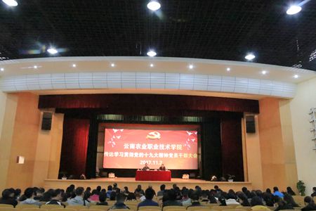 2017年11月2日上午九點,學院黨委在小哨校區大禮堂舉行傳達學習貫徹黨的十九大精神黨員干部大會。學院黨政領導,全體黨員及中層干部參加會議。