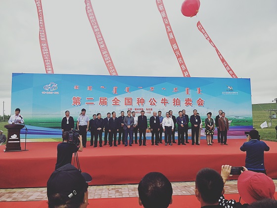 本屆拍賣會由中國畜牧業(yè)協(xié)會、國家畜牧科技創(chuàng)新聯(lián)盟、中國農(nóng)業(yè)科學院北京畜牧獸醫(yī)研究所主辦,由肉用西門塔爾牛育種聯(lián)合會(北京聯(lián)育肉牛育種科技有限公司)、烏拉蓋管理區(qū)管委會、錫林郭勒盟農(nóng)牧局、國家肉牛遺傳評估中心承辦,獲農(nóng)業(yè)農(nóng)村部科技教育司、農(nóng)業(yè)農(nóng)村部種業(yè)管理司、農(nóng)業(yè)農(nóng)村部畜牧獸醫(yī)局、全國畜牧總站支持。拍賣會共有73頭6—18月齡的西門塔爾和安格斯種公牛參與競拍,分別來自湖北、河南、河北、吉林、云南、內(nèi)蒙古等地的9家肉牛核心育種場、種牛場及育種合作社。經(jīng)過緊張激烈的比價競拍,最終73頭參拍種公牛共完成競拍59頭,成交總額達552萬元。