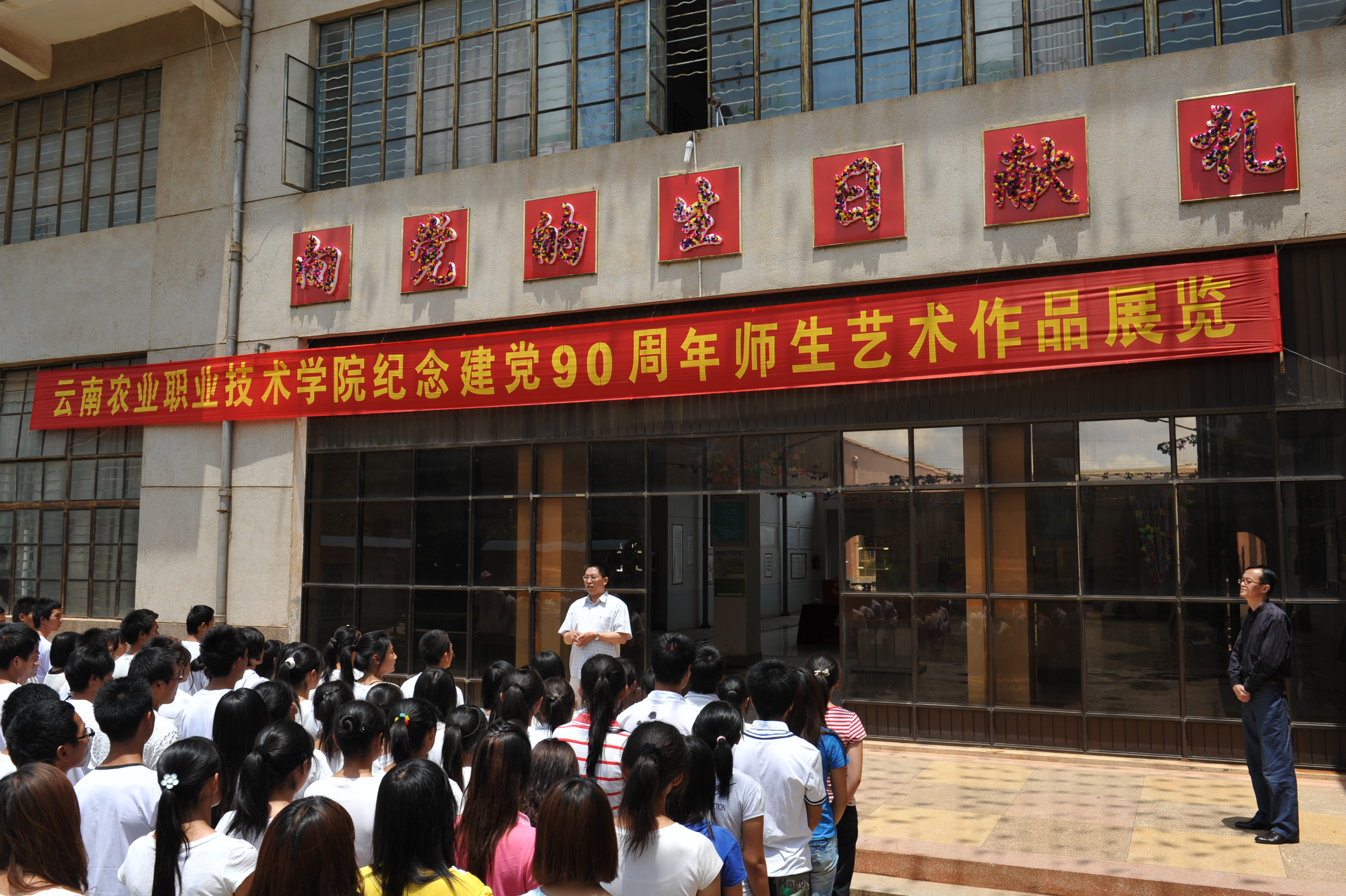 通知中心2011年6月10日下午2點,云南農業職業技術學院慶祝建黨90周年“向黨的生日獻禮”師生藝術作品展在學院小哨校區圖書館一樓大廳開幕。云南農業職業技術學院黨委書記崔金賦同志在開幕儀式上做了致詞并參觀了師生作品。