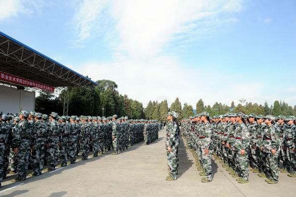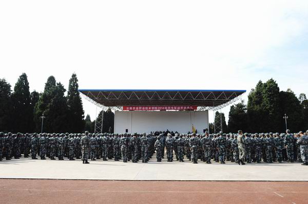 云南農業職業技術學院黨委書記崔金賦、俞浩副院長,昆明民族干部學院一大隊政治委員司馬迅靈、熊云海副大隊長出席動員會。我校相關部門負責人、各二級學院黨總支書記、帶隊教師、教官及2014級近2000名軍訓學生參加了軍訓動員大會。大會由昆明民族干部學院一大隊副隊長熊云海主持。