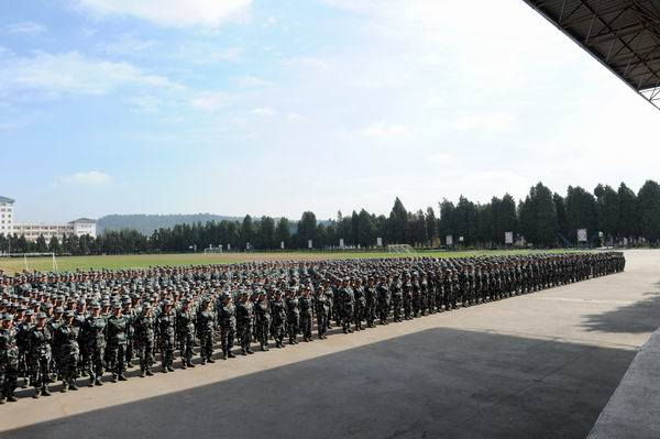 昆明民族干部學院的教官代表在講話中表示,為了圓滿完成本次軍訓任務,全體教官決心做到:按計劃嚴格施訓,做到科學管理、科學訓練;不打罵、不體罰學生,做到以情帶兵,以理服兵;在生活中,力盡所能關心、幫助每一位同學,與老師一道將各項工作做好;培養同學們吃苦耐勞、團結協作、愛國奉獻、頑強拼搏的作風,力爭讓每一位同學有所獲、有所得;保質按量地完成各項任務,以優異的成績向領導和老師匯報。