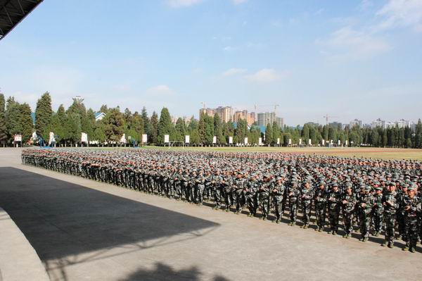 動員大會在《中國人民解放軍軍歌》中結束。我校2014級近2000名學生將在半個月的嚴格、緊張、艱苦的軍訓生活中鍛煉成長!同學們將敢于吃苦,無懼烈日風雨,受住嚴酷的考驗,耐住枯燥的訓練,保持飽滿的熱情和高昂的斗志,圓滿完成軍訓的各項任務。(黨委宣傳部供稿)